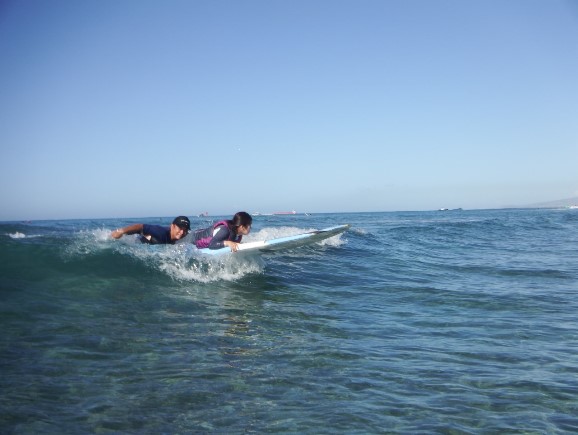 椅子利用のお客様がハワイでサーフィンを楽しむ様子