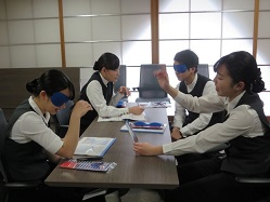 宿泊部門新入社員向け視覚障害者体験研修の様子